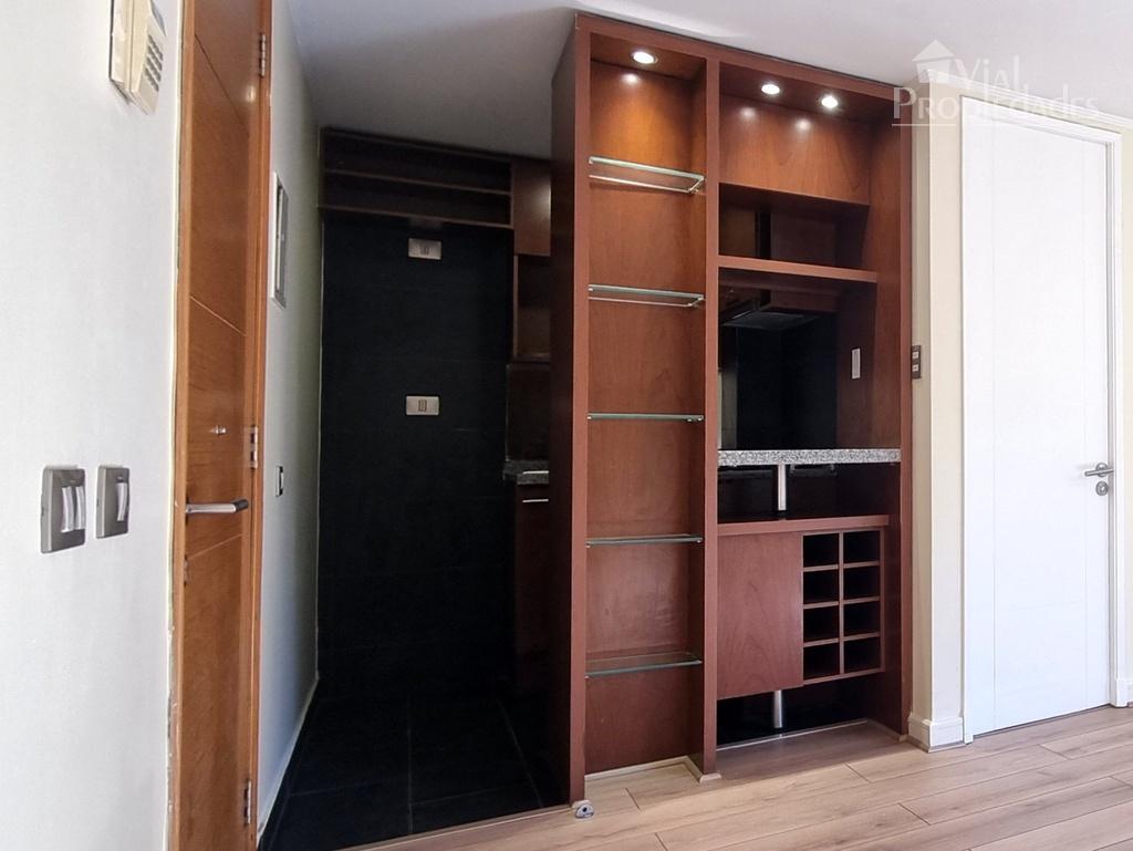 Estupendo departamento estudio (Un ambiente) como nuevo desocupado, con entrega inmediata, a pasos del metro Manuel Montt. Departamento remodelado, con walking closet y baño amplio. Departamento muy iluminado, con terraza y vista despejada al Norte. Recién pintado en techos y muros de todo el departamento, con moderno piso flotante recien instalado , cocina nueva, horno eléctrico nuevo, campana nueva.